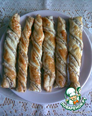 Ингредиенты для «Палочки с орехами из слоеного теста»: