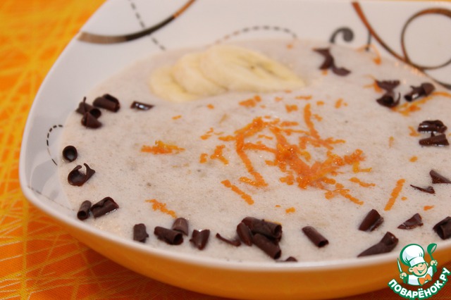 Густой молочно-банановый суп-пюре с ароматом апельсиновой цедры. Хорош в качестве десерта как для маленьких сладкоежек, так и для взрослых гурманов. Этот рецепт был размещен пользователем Лисенок в 2008 году под названием "Банановый суп-пюре" и иллюстрирован мною в рамках акции «Раскраски».