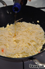 В воке (или казане) разогреть сливочное и оливковое масло, можно и на растительном масле всё приготовить, но так мне кажется всё же вкуснее.