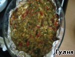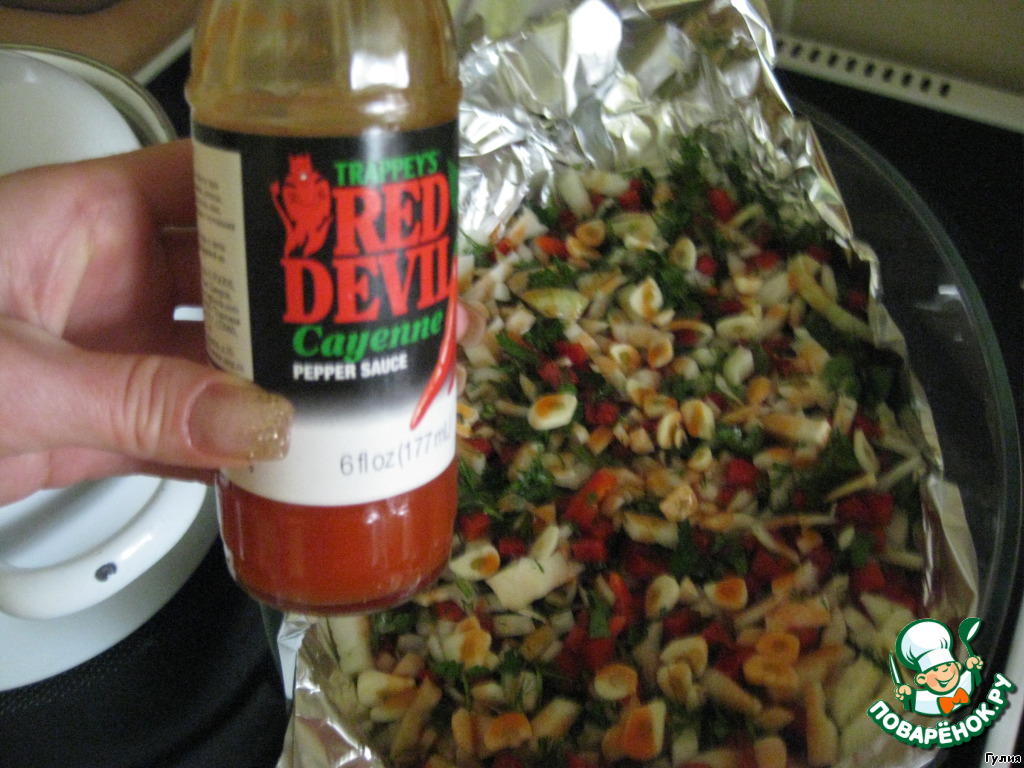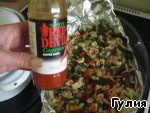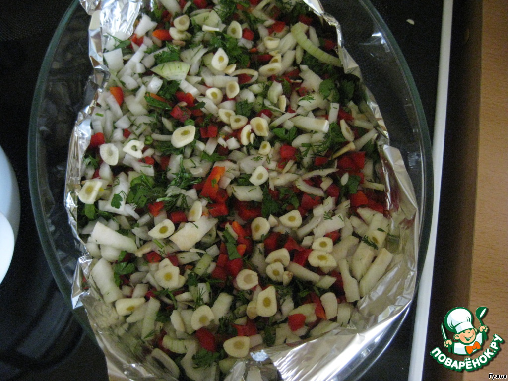 В жаропрочную посуду выложить фольгу, на фольгу овощи, полить маслом, посыпать специями.