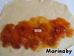 Выложить абрикосовое варенье (у меня были половинки абрикосов в сиропе).