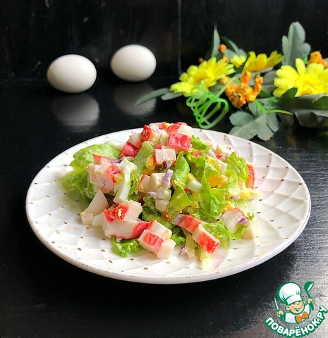 Рецепт «Зеленый салат с крабовыми палочками»: