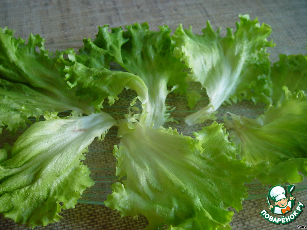 Выкладываем дольки поверх салата, опять поливаем соусом.