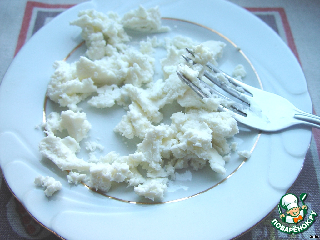 Разминаем вилкой или режем кусочками сыр (зависит от твердости сыра и от желания).