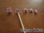 Небольшой кусочек проволочки загнуть с одной стороны, на него закрепляем цветочек.