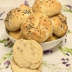 По этому рецепту уже неоднократно делала хлеб в ХП, но иногда, мне надоедает хлеб в форме кирпичика и я адаптирую рецепты для выпекания в духовке в виде батонов или, как в этот раз, булочек. Булочки, как и хлеб, выходят очень пышные и мягкие внутри, с ароматной корочкой и приятным вкусом кунжута.