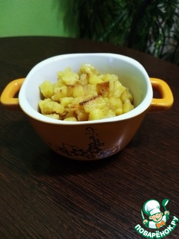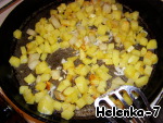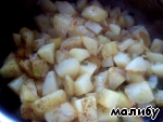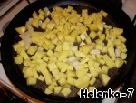 Нарезать на крупные кубики и выложить на уже горячую сковороду с растительным маслом