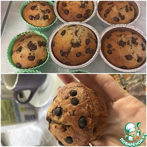Рецепт «Банановые маффины с шоколадными каплями»: