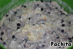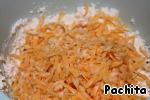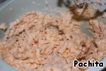 Творог смешать со сметаной, натертым сыром (у меня "Мраморный").