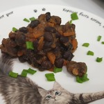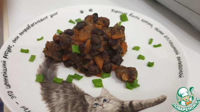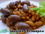 Увеличиваем огонь и выпариваем соус. Добавляем к нашим сердечкам консервированную фасоль в томатном соусе (либо обычную консервированную фасоль + 2 ст.л. томатной пасты + 2 ст.л. воды + 0,5 ч.л. сахара). -