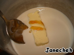 Займемся карамелью. Все ингредиенты для карамели смешать в кастрюльке, поставить на медленный огонь. Проварить минут 10, помешивая.