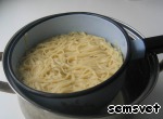 В большом количестве подсоленной воды сварить лапшу. Откинуть на дуршлаг, дать стечь воде.