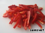 Сладкий перец нарезать тонкими брусочками.