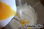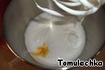 Добавляем желтки к взбитым белкам и аккуратно перемешиваем.