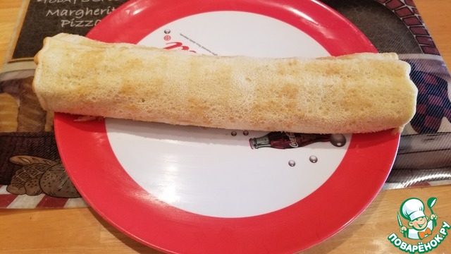 Во-вторых, моя духовка печет с одного края немного сильнее, для такого нежного теста это оказалось критично, этот край получился малость суше и его сложно свернуть рулетом.