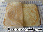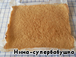 Перевернуть, взявшись за края бумаги. Затем бумагу аккуратно отделить от коржа и удалить.