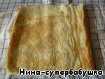 Готовый корж сдвинуть на чистое полотенце.
