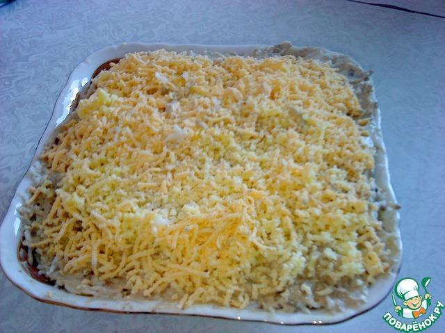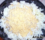 3 слой: натереть на терке белки. Выложить в салатницу и полить соусом.