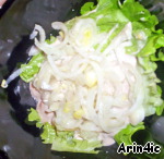Иногда просто нет сил готовить на ужин что-то трудоемкое и затратное по времени. Тогда на выручку приходят салаты. Недавно на одном из кулинарных сайтов обнаружила интересный салат, "изюминка" которого - соус. Получился вкусный, питательный и относительно легкий ужин!
