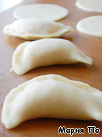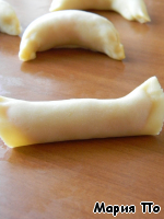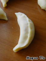 Теперь переворачиваем и защипаем завёрнутый краешек, формируя полумесяц.