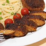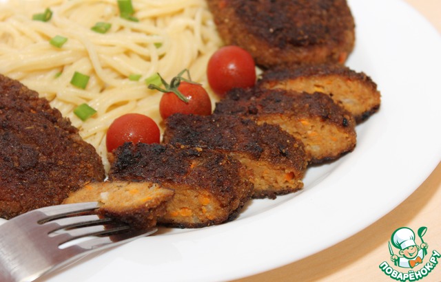 По рецепту котлетки готовились в пароварке. У меня нет этого чуда техники. Сформировала котлетки, запанировала в сухарях и запекла в духовке при температуре 150* минут 30.