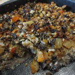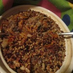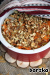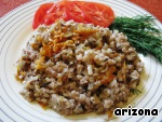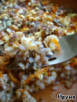 Вкусное интересное блюдо из гречки с грибами и овощами. Может использоваться как самостоятельное блюдо, так и в качестве гарнира. Рецепт этого блюда был размещен на сайте в 2008 году пользователем karumniece под названием "Слоeнка из моркови и гречки" и иллюстрирован мной в рамках акции "Раскраски".