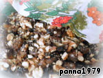 Далее выкладываем слоем оставшуюся часть грибов. Опята при варке темнеют, если будут использоваться шампиньоны, цвет у них будет более аппетитный )). Посыпаем немного солью и перцем. Немного поливаем сверху растительным маслом и посыпаем рубленными орехами. Я не очень мелко их рубила, не в "крошку".