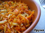 Лук режем четвертинками колец, морковь трем на крупной терке, обжариваем на растительном масле. Солим, перчим.