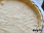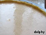 Тесто раскатайте по диаметру формы (у меня 24 см). Выложите в форму основу с бортиками.