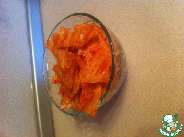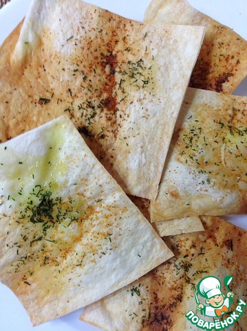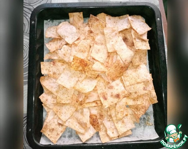 Можно смазать и майонезом с чесноком, будут чипсы посмачнее, ну и калорийнее. -