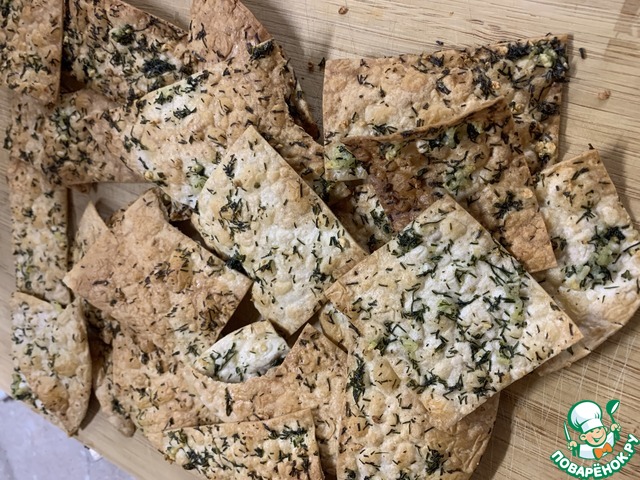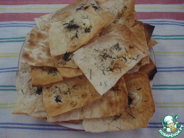 Всего-то надо: лаваш, укроп, чеснок, оливковое масло, свежемолотый перец, соль.