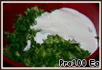 Йогурта без добавок у меня не было, сделала заправку из 3 ст. л. сметаны и 3 ст. л. кефира, чем гуще получается, тем вкуснее, на мой взгляд.