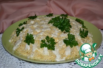 Все смешать и заправить майнезом. Соль, перец по вкусу.