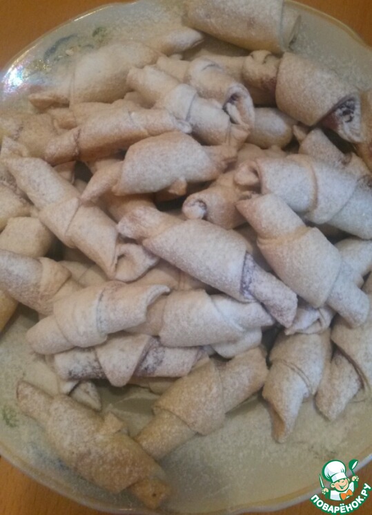 Готовые трубочки выложить на противень и поставить в духовку на 20-25 минут. Готовые трубочки посыпать сахарной пудрой, и можно пить чай! Для мамы, понятное дело, сахарной пудрой не посыпали, но и просто с фруктозой эти трубочки были хороши!