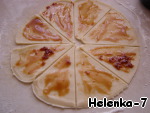 И намажем каждый сектор джемом. Я мазала вареньем, но имейте в виду, что при приготовлении в духовке варенье немного вытекло, пришлось лист отчищать.