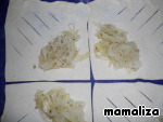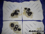 На цельную половинку выкладываем по одной столовой ложке теплого лука.