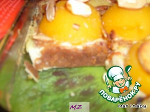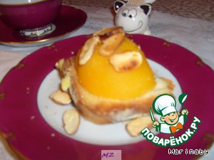 Ставим на 30 минут в разогретую духовку до 180 градусов. Подаем персиковую запеканку в холодном виде, посыпав миндальной стружкой.