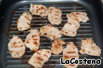 Через 10 минут мясо выкладываем на сковородку гриль и жарим с двух сторон до готовности.
