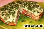 Последний блин смазываем соусом и обильно посыпаем измельченной зеленью.