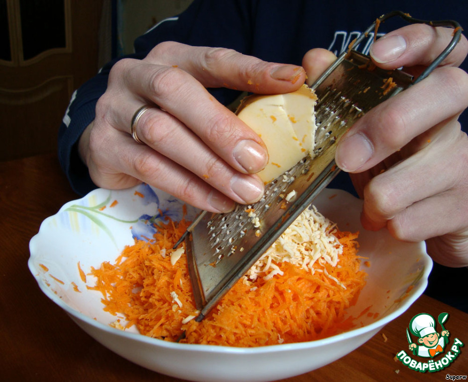 Натереть морковку на терке.