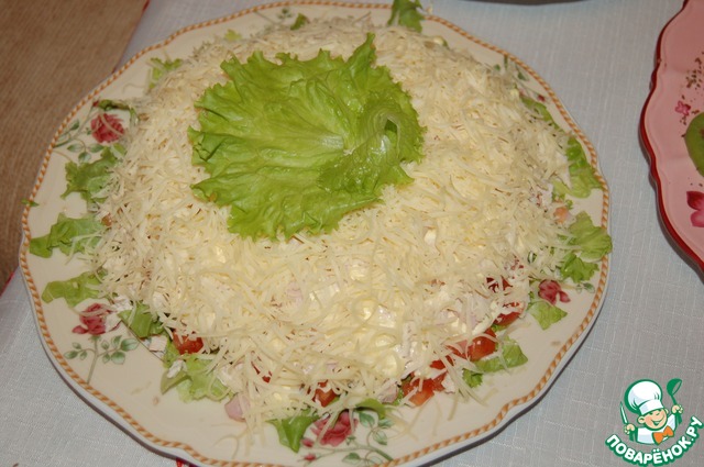 3-й слой - помидоры (сок слить), посолить по вкусу, снова майонез;