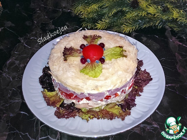Мы с мужем регулярно ходим в наш любимый ресторан "Меркурий", там он все время заказывает фирменный салат. Он ему очень нравится. И по этой причине я стала делать этот салат дома. Хочу с Вами поделиться...