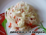 Лук режем тонкими полукольцами, выкладываем на крабовые палочки. -