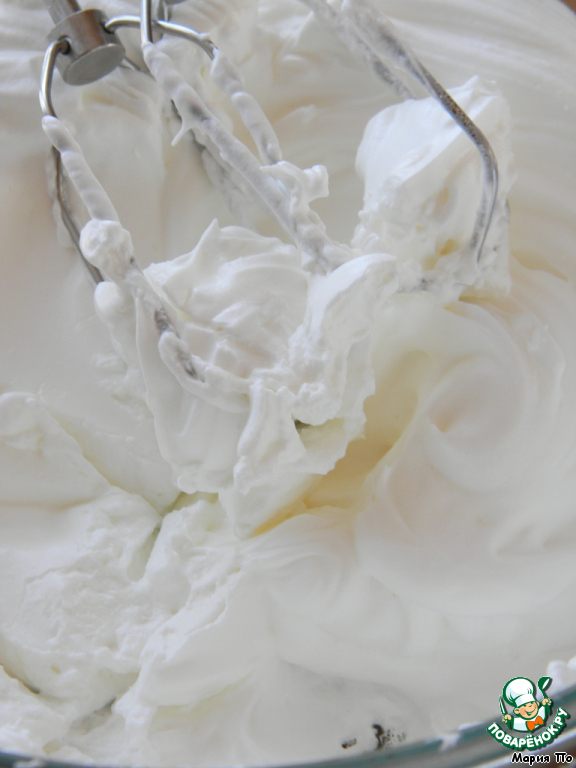 Поставить на водяную баню. Взбивать на высокой скорости, пока белки не собьются в пышную крепкую массу.