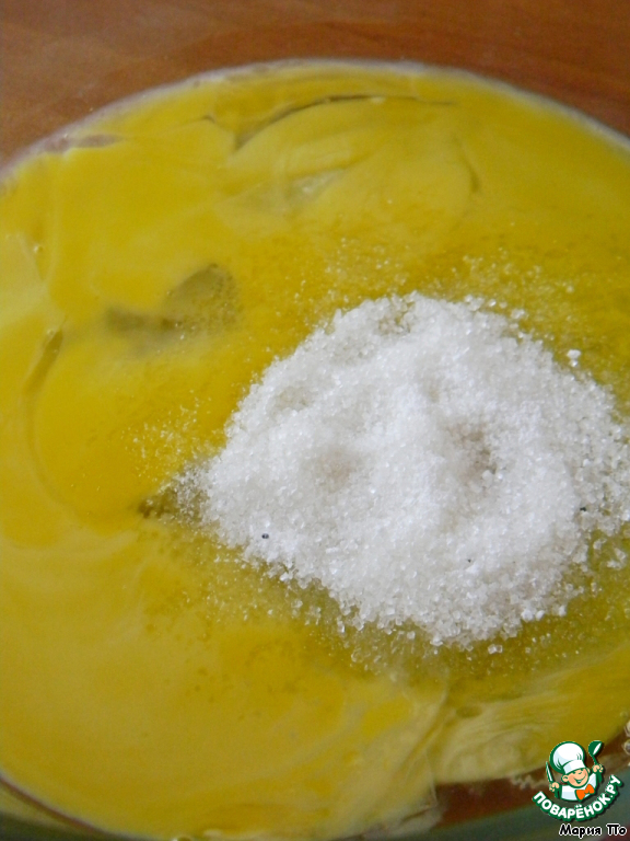 - Сахар (в крем - 5 ст.л.; в бисквит - 3 ст.л.) — 8 ст. л.