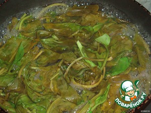 Щавель перебрать, помыть, припустить на сковороде 1-2 минуты.