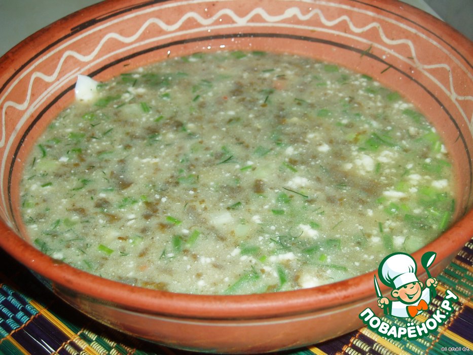 Добавить протушенный щавель в воду с картофелем. Я добавляю приправу "Магги - гранулированная суперприправа", 2 чайные ложки. Варить еще минут 5.
