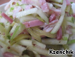 Лук нарезать тонкими полукольцами, яблоки - брусочками (как буженину).