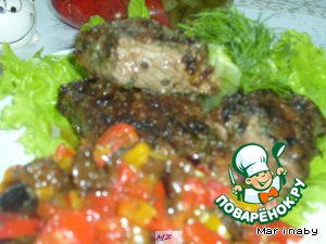 • После мариновки обвалять мясо в панировочной смеси. Поджарить с обеих сторон на сливочном масле до готовности.