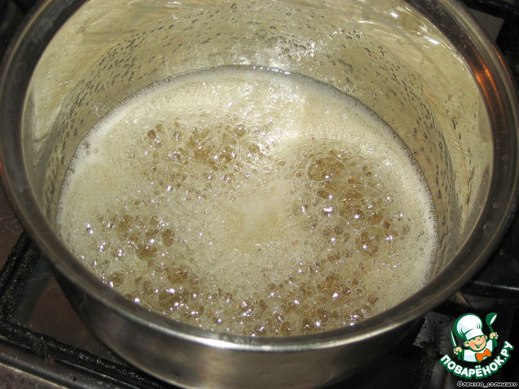 Воду вскипятить в кастрюле, добавить сахар и мед, после появления первых пузырьков варить на среднем огне 8 минут